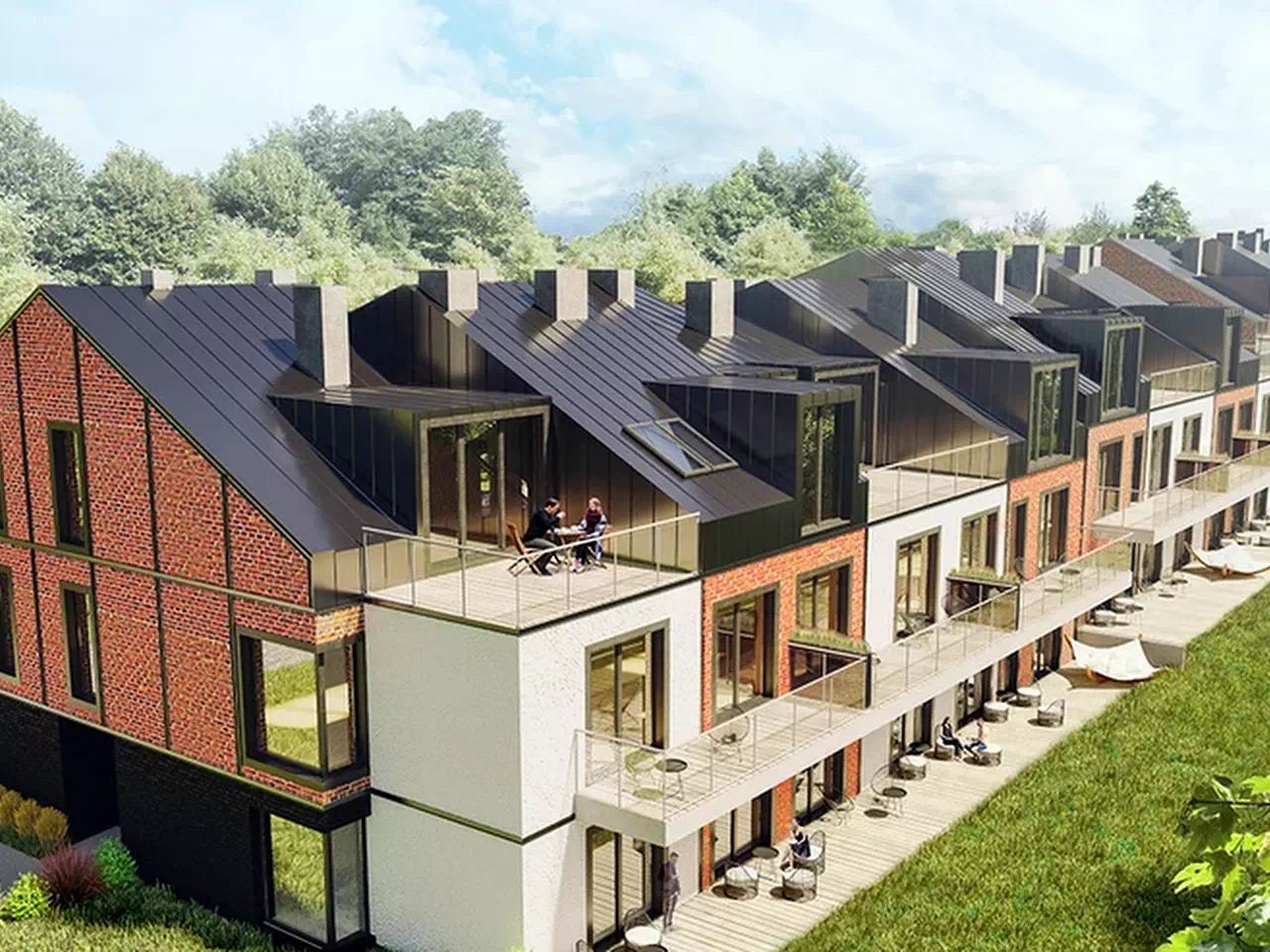 Mieszkania na parterze posiadają przydomowe ogródki, a te na piętrach duże tarasy lub balkony z widokiem na cichą i spokojną okolicę. Do dyspozycji mieszkańców są wewnętrzne garaże oraz komórki lokatorskie, a także parking zewnętrzny i plac zabaw dla dzieci.