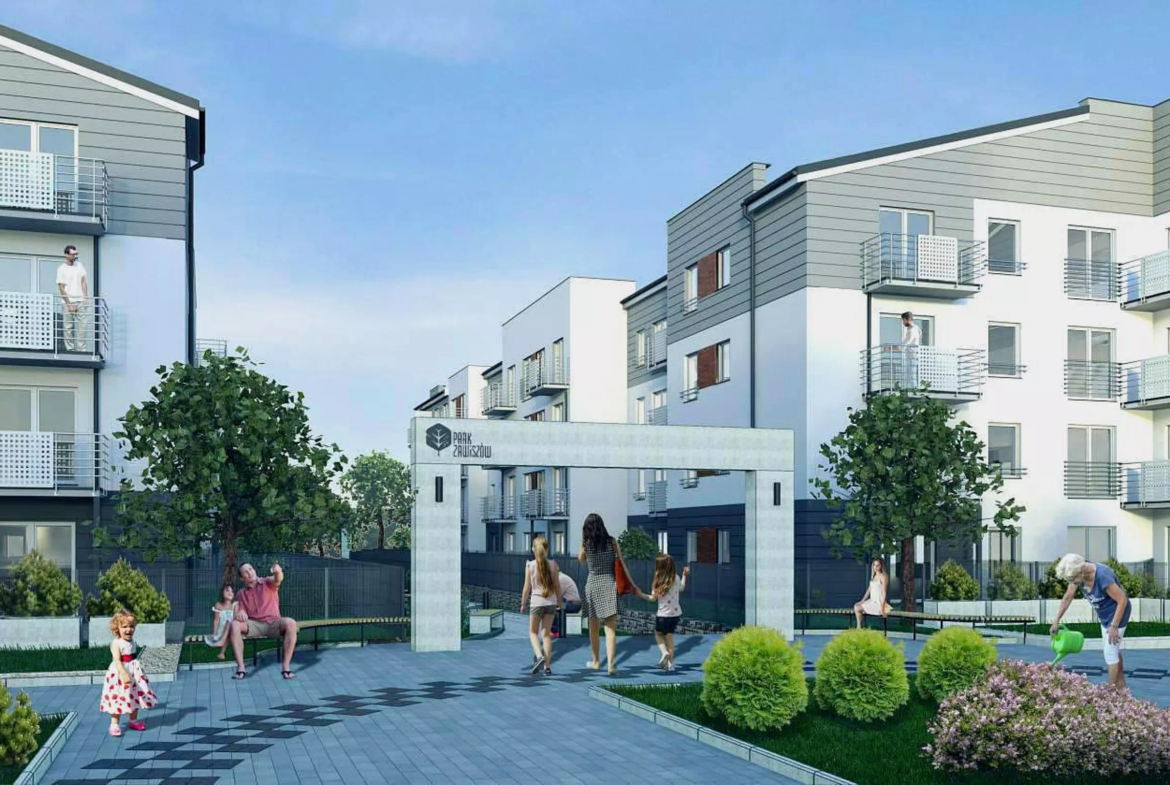 Ideą projektu Park Zawiszów było stworzenie zielonej enklawy pośród istniejącej zabudowy, w której mieszkańcy znajdą chwile wytchnienia, nawiążą relacje z sąsiadami, spędzą czas z dziećmi. Tuż przy budynku znajdą Państwo wiele ławek sprzyjającym sąsiedzkim pogawędkom oraz strefę chillout z miejscem do wypoczynku na świeżym powietrzu. Nieopodal znajduje się zewnętrzna siłownia, a przy bud. A urokliwa aleja spacerowa i multi-funkcyjny plac zabaw z piramidą linową, huśtawkami, mini-torem, trampoliną i bezpieczną piaskownicą dla maluszków zapewniającą wiele atrakcji dzieciom w każdym wieku.